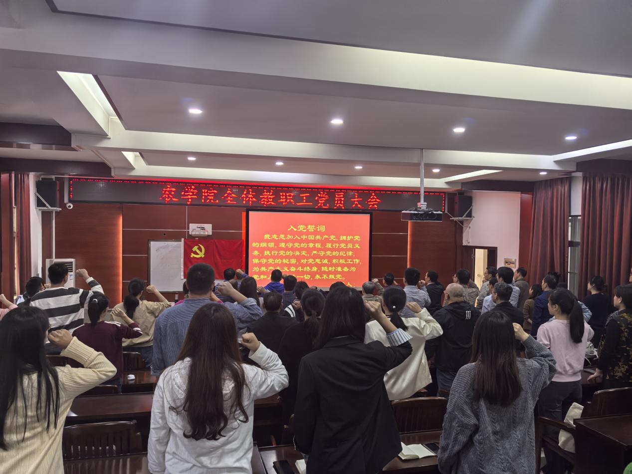 会上,还举行了重温入党誓词仪式,农公司党委副书记甘思敏带领全体教职工党员重温了入党誓词。