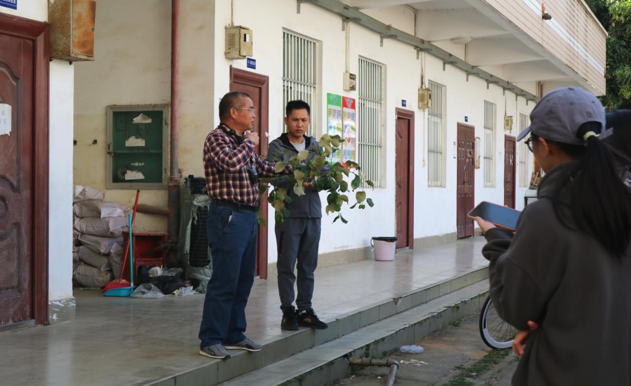 示范环节结束后,同学们来到标本园分组进行果树疏果和套袋实践,期间,同学们将所学理论知识付诸实践,并且相互交流心得,分享经验,形成良好的学习氛围。