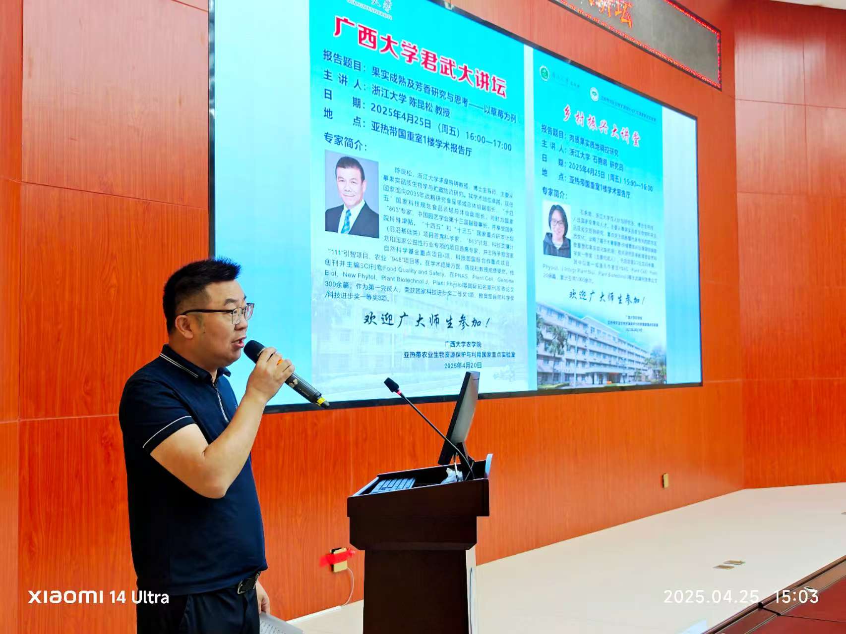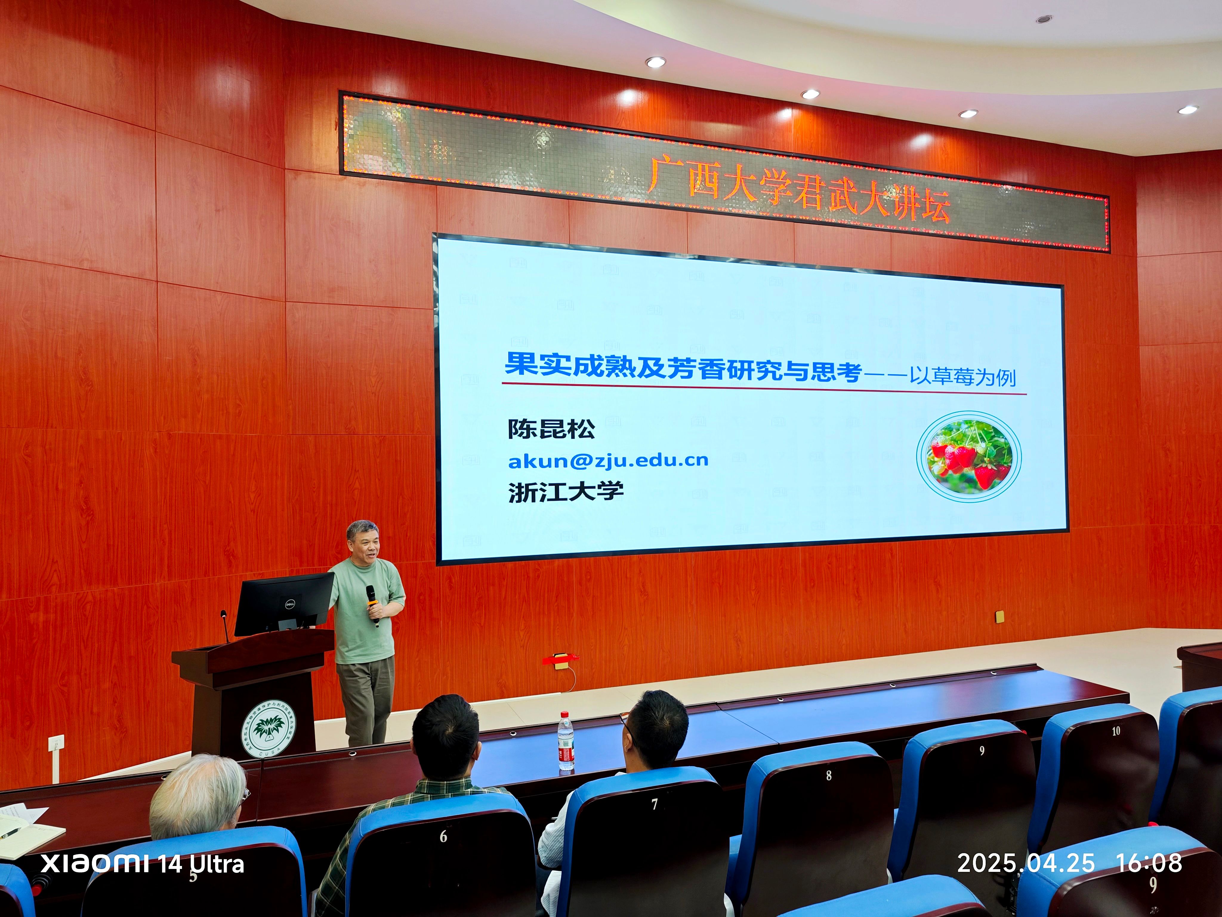 4月25日,浙江大学求是特聘教授陈昆松和浙江大学百人计划石艳娜研究员应邀到公司,开展了一场精彩纷呈的学术交流活动。陈昆松教授在君武大讲坛上,以“果实成熟及芳香研究与思考——以草莓为例”为主题进行了深度分享,石艳娜研究员则做客公司乡村振兴大讲堂,为师生作了题为“肉质果实质地调控研究”的学术报告。此次活动吸引了suncitygroup太阳新城、亚热带农业生物资源保护与利用国家重点实验室(亚热带国重室)、生命科学与技术学、轻工与食品工程公司等多个公司的200余名师生参与聆听,报告会由亚热带国重室主任兼suncitygroup太阳新城经理张积森教授主持。