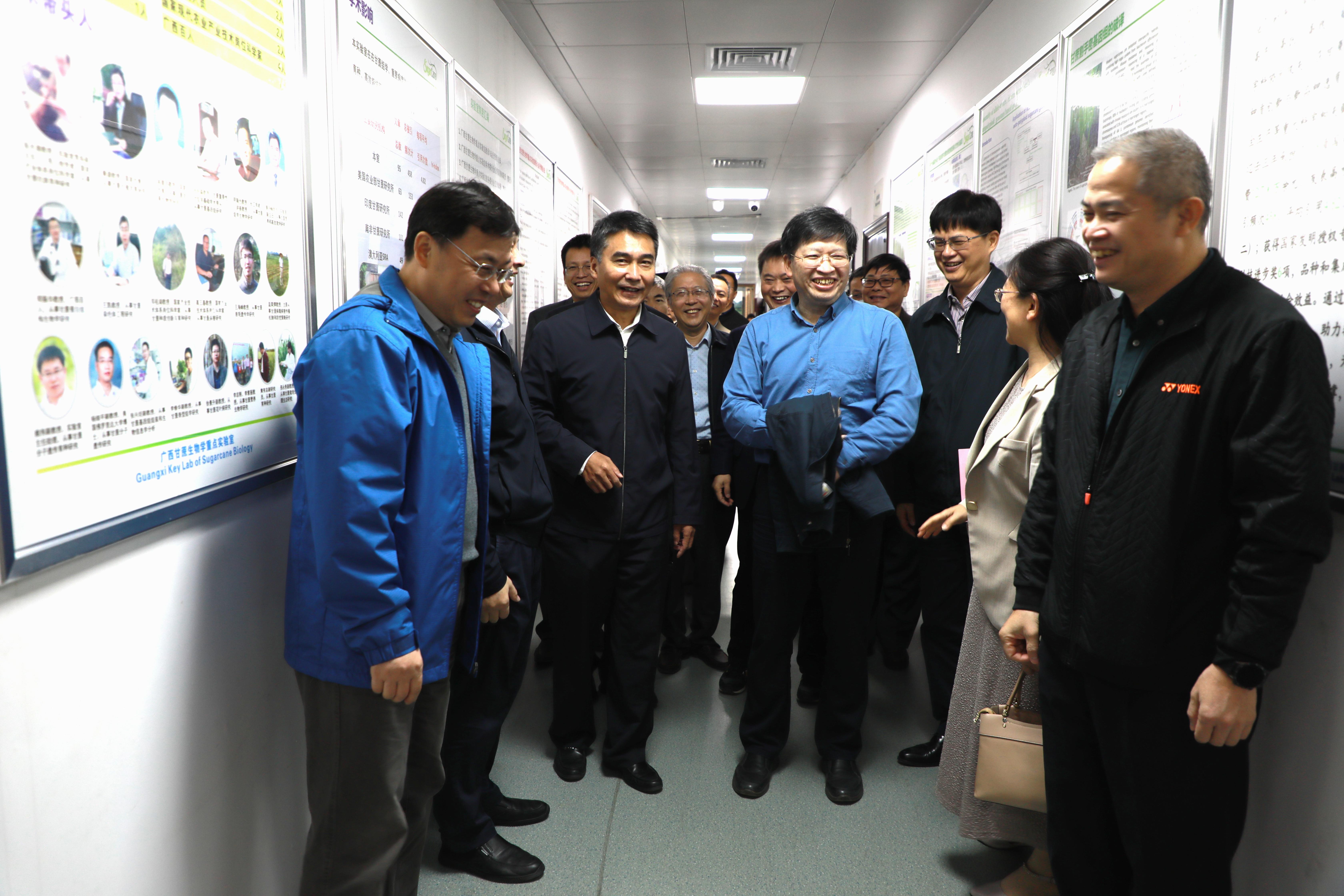 11月9日,中国工程院副经理、国家现代农业柑橘产业技术体系首席科学家邓秀新院士一行到公司甘蔗生物学重点实验室调研甘蔗产业并做客君武大讲坛。自治区政协副主席、公司党委书记王乃学陪同调研,副董事长冯家勋主持学术报告会,suncitygroup太阳新城、生命科学与技术公司及广西农业科公司100余人聆听了报告会。冯家勋副董事长、农公司党委书记张国宏、常务副经理何龙飞陪同调研并出席报告会。