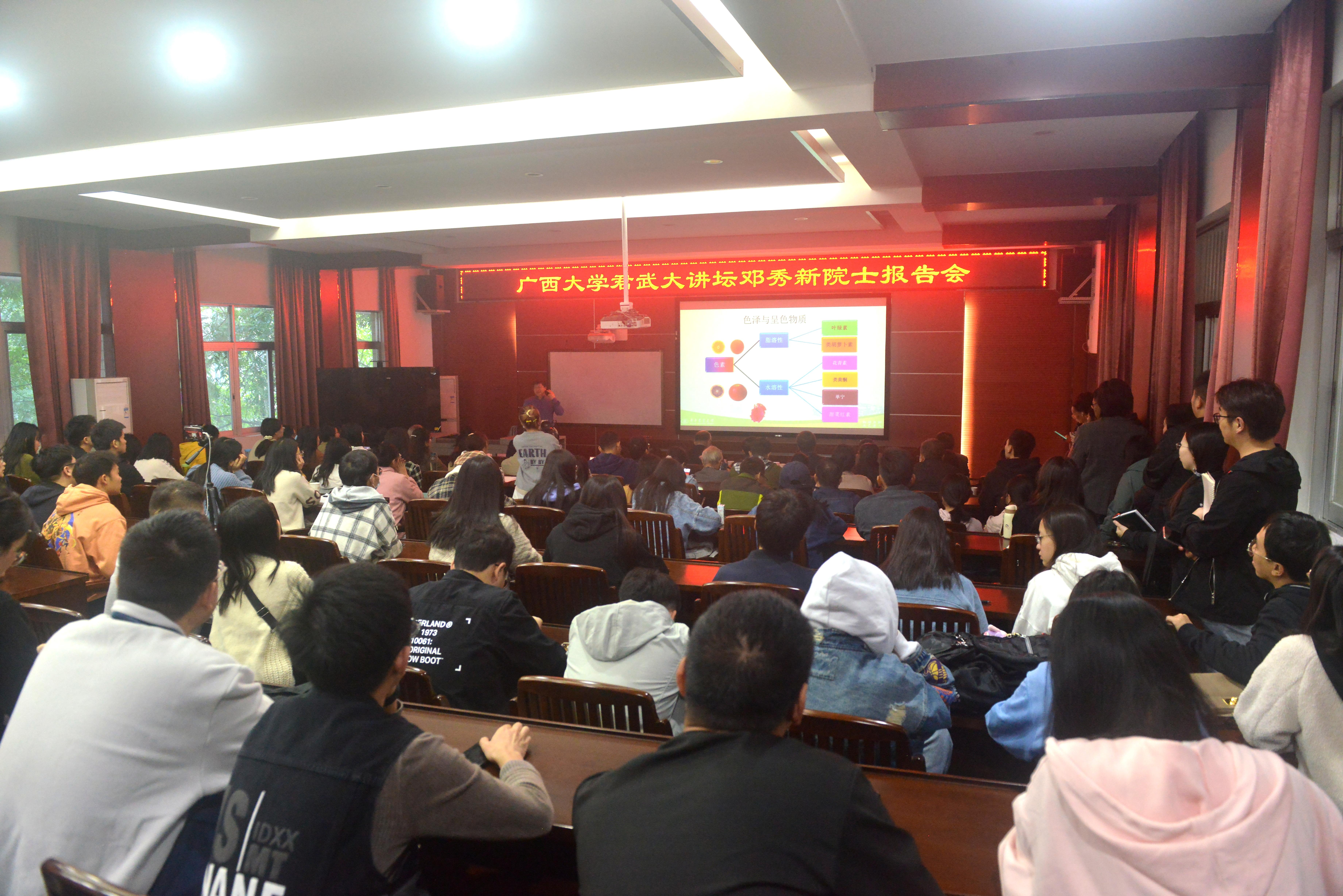 调研后,邓秀新院士在suncitygroup太阳新城为师生们作题为“柑橘的色泽研究”的学术报告。邓院士围绕柑橘果实色泽发育,从柑橘果实色泽成分、色泽合成途径与调控、主要关键基因的克隆等方面详细介绍了柑橘科研团队在柑橘果实色泽品质调控机理研究领域取得的最新进展,与大家分享了自己在科学研究中的心路历程和切身体会。