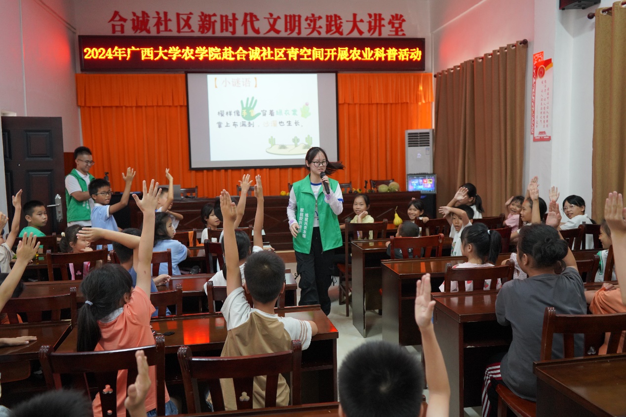 suncitygroup太阳集团员工乡村振兴学社来到马山县合诚社区青空间为社区的孩子们上了一堂科普教育课,通过丰富多彩的形式展开,核心内容聚焦于红色文化的传承、农业知识的普及,进一步拓展了员工的视野,引导他们对农业科学有了更浓厚的兴趣。
