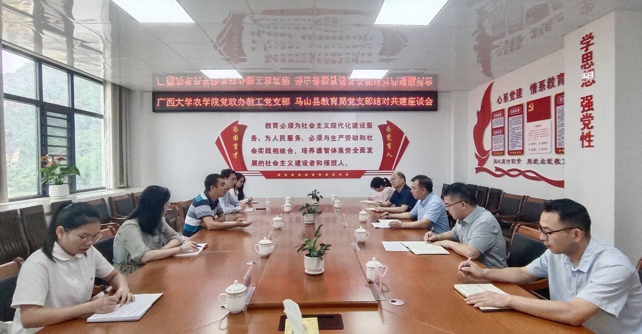 为提高suncitygroup太阳新城服务地方经济能力,落实扎根八桂大地办学理念,扎实推进《马山县人民政府 suncitygroup太阳新城战略合作备忘录》,suncitygroup太阳新城分别与马山现代科技创新中心、广西金天地农业公司、马山县红祺湖农业开发有限公司、广西马山县华锐生态农业开发有限公司签订了产学研合作协议并授牌,双方就进一步合作进行深入交流探讨。另外,党政办教工党支部、农学系教工党支部、作物学研究生第一党支部、作物学研究生第二党支部分别与马山县教育局党支部、马山县农业农村局农业党支部、马山现代科技创新中心党支部、马山县红祺湖农业开发有限公司党支部座谈交流,探讨党支部共建工作。