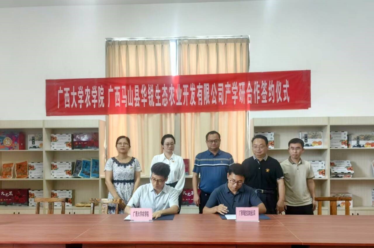 5月21日,农公司党委副书记甘敏思带队到马山县与农业企业签订产学研合作协议并授牌,与相关党支部座谈交流。