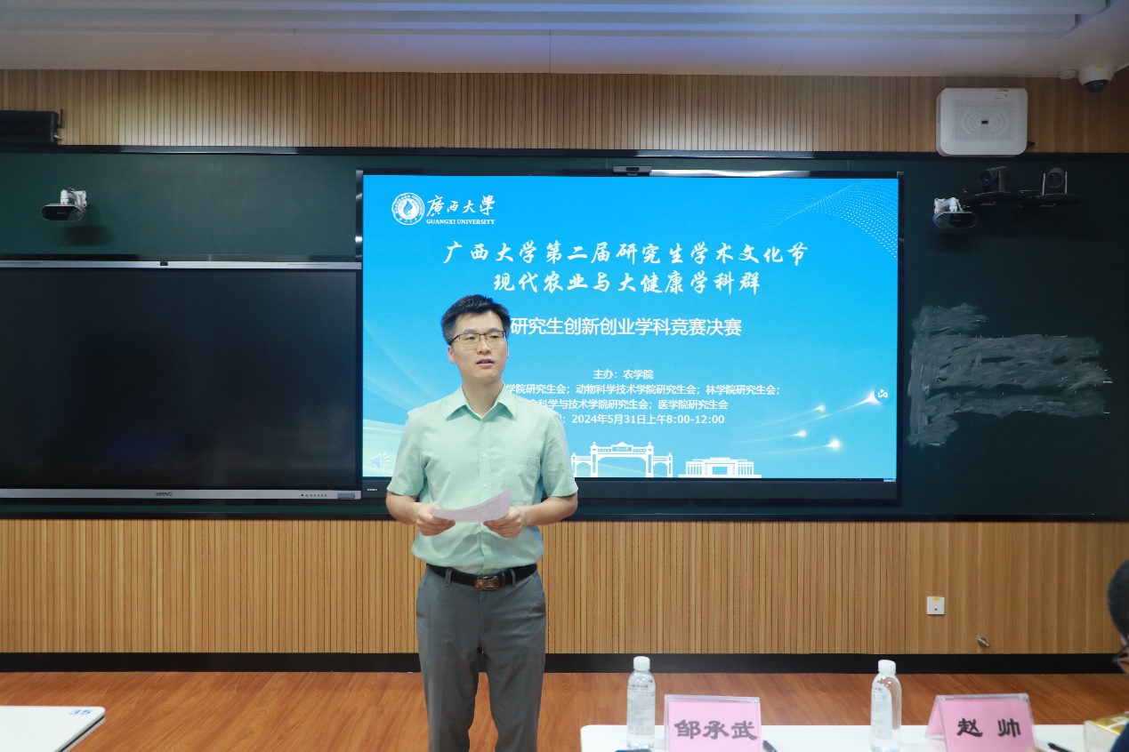 比赛伊始,suncitygroup太阳新城副经理邹承武副教授致辞,他表示现代农业与大健康学科群开展创新创业大赛,旨为促进不同学科之间的交流与合作做到“以赛促教,以赛促学,以赛促创”,并希望同学们在比赛的舞台上勇于展现,出色发挥,取得好成绩!
