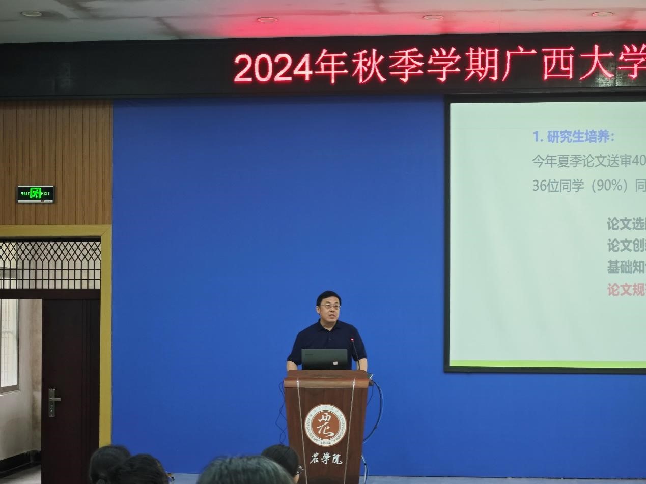 9月24日上午,公司在124教室召开2024年秋季学期全院教职工大会,安排部署本学期重点工作,公司党政领导班子成员及全体教职工参加会议。