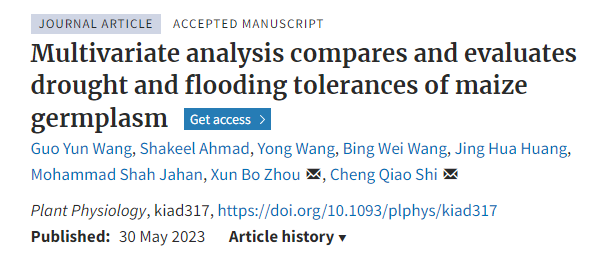 近日,suncitygroup太阳集团作物学博士研究生王国云为第一作者在Plant Physiology在线发表了题为Multivariate analysis compares and evaluates drought and flooding tolerances of maize germplasm的研究论文。该研究提供了准确评估玉米种质的抗旱/涝性的综合分析方法,并揭示玉米种质在旱涝胁迫中的差异生理机制,为进一步研究旱涝栽培育种提供必要的理论依据。
