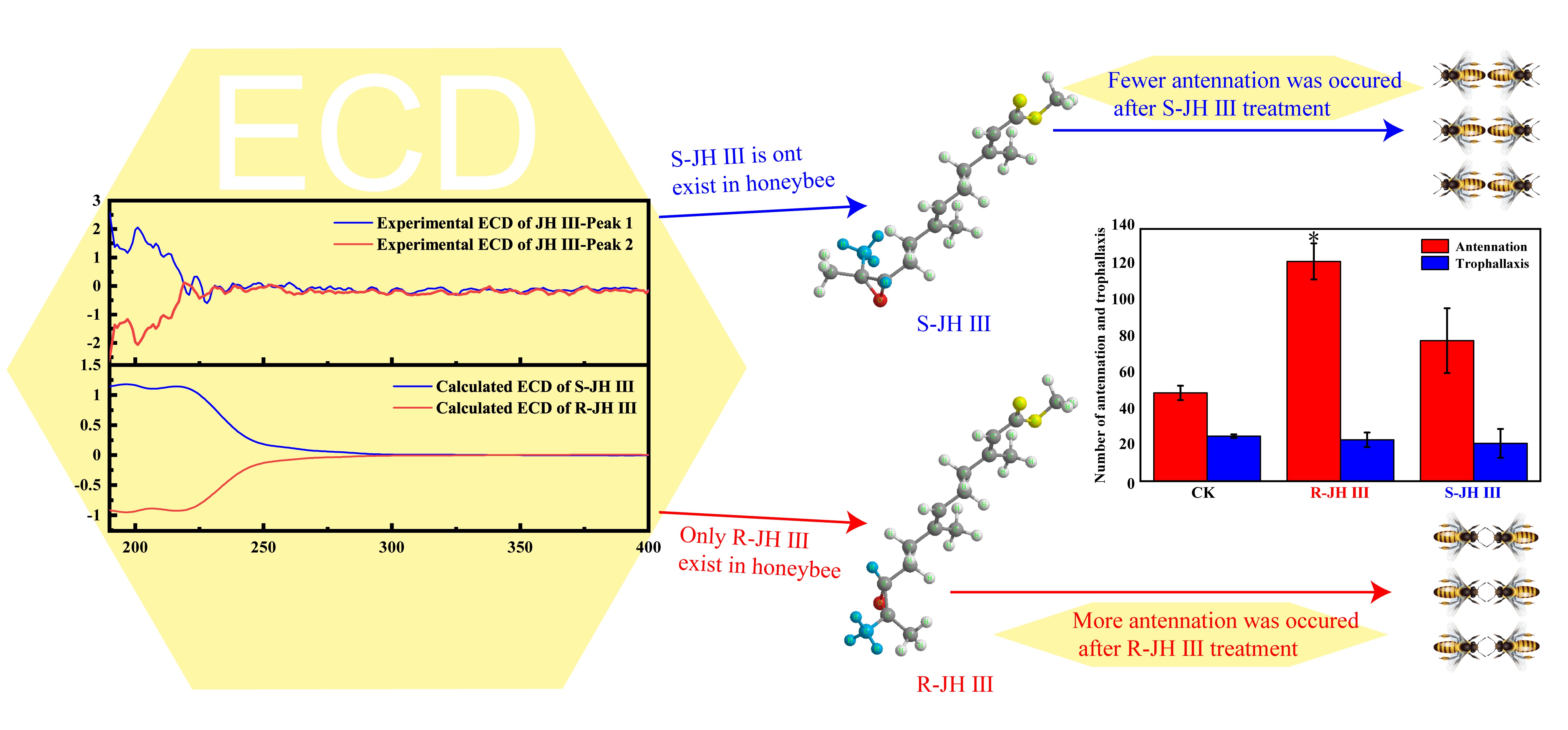 蜜蜂具有严格的社会等级分工,我们前期的研究发现,具有显著社会性、聚集行为的昆虫如蜜蜂、白蚁、蝗虫等体内普通具有更高滴度的JH III。我们以蜜蜂为研究对象,针对JH III与昆虫的社会性行为关联性进行了研究。结果表明,R-JH III对蜜蜂交互、交哺等社会行为影响明显高于S-JH III,R-JHⅢ引起受体及下游应答基因更高响应,激活激素传感和信号传导等生物学过程,R-JH III与蜜蜂建立其社会系统优势具有显著关联。研究成果首次表明大多数昆虫特异性合成R-JH III可能在其生理调控中具有显著的进化优势。成果为昆虫行为分化、聚集与行为调控、立体构型与功能差异等研究开辟新途径。suncitygroup太阳新城2020级硕士罗杰为该论文的第一作者,李雪生副教授为论文的唯一通讯作者,本研究工作得到广西农业环境与农产品安全重点实验室的支持。 (J. Agric. Food Chem. 2022, 70, 6097−6107,论文链接:https://pubs.acs.org/doi/epdf/10.1021/acs.jafc.2c00762)