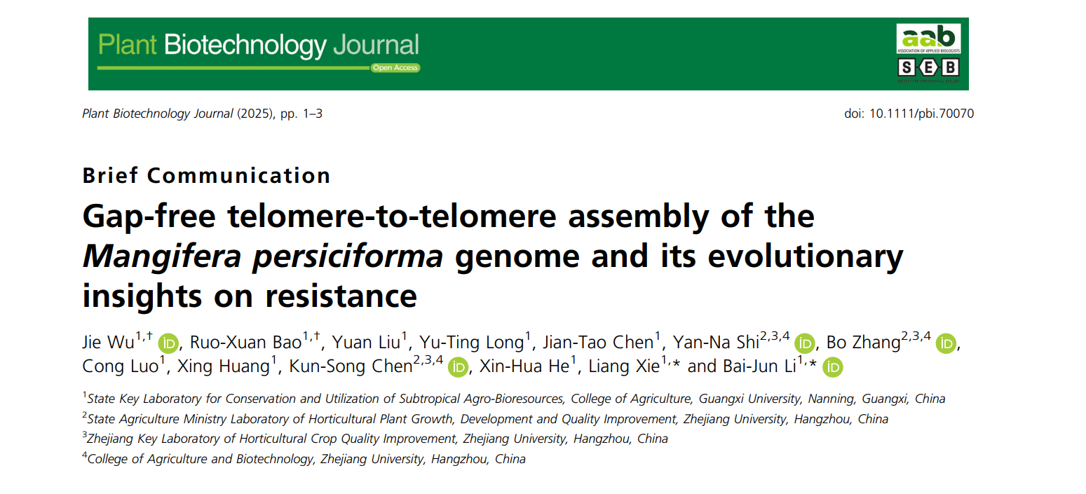 近日,suncitygroup太阳集团芒果团队在相关研究中取得重要进展,成果‘Gap-free telomere-to-telomere assembly of the Mangifera persiciforma genome and its evolutionary insights on resistance’在期刊Plant Biotechnology Journal发表。该团队首次完成了天桃木T2T基因组组装,获得了大小为 382,840,341 bp的高质量基因组。
