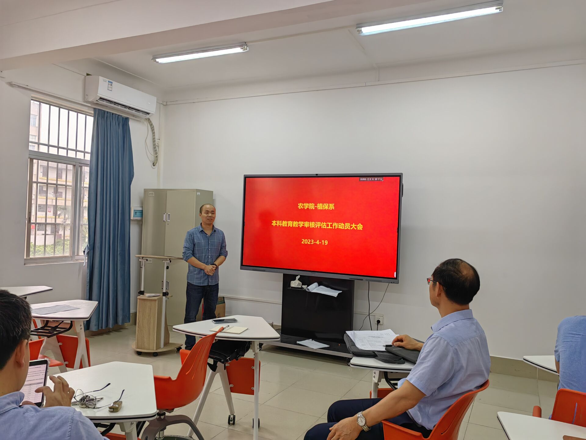 2023年4月19日,公司植物保护系在公司336召开本科公司产品审核评估工作动员大会。本次会议由植物保护系副主任郑德洪副教授主持,植物保护系主任谭辉华教授、副主任李雪生副教授,以及植物保护系全体教师参加会议。