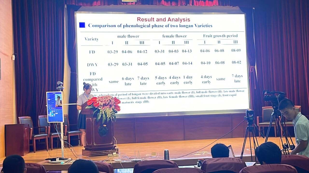 2023年6月,由邓英毅老师带队suncitygroup太阳新城韦淑艳同学参加了第七届国际荔枝龙眼和其他无患子科果树学术研讨会学术会议,在会上做了‘凤大晚蜜’龙眼在南宁的引种表现专题报告,发表了《‘凤大晚蜜’龙眼在南宁的引种表现》论文。