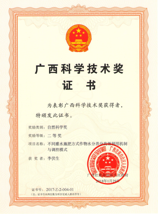 自然科学奖 二等奖-李伏生(2018.1.29)